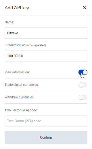 - Entrez vos clés API Bitvavo.