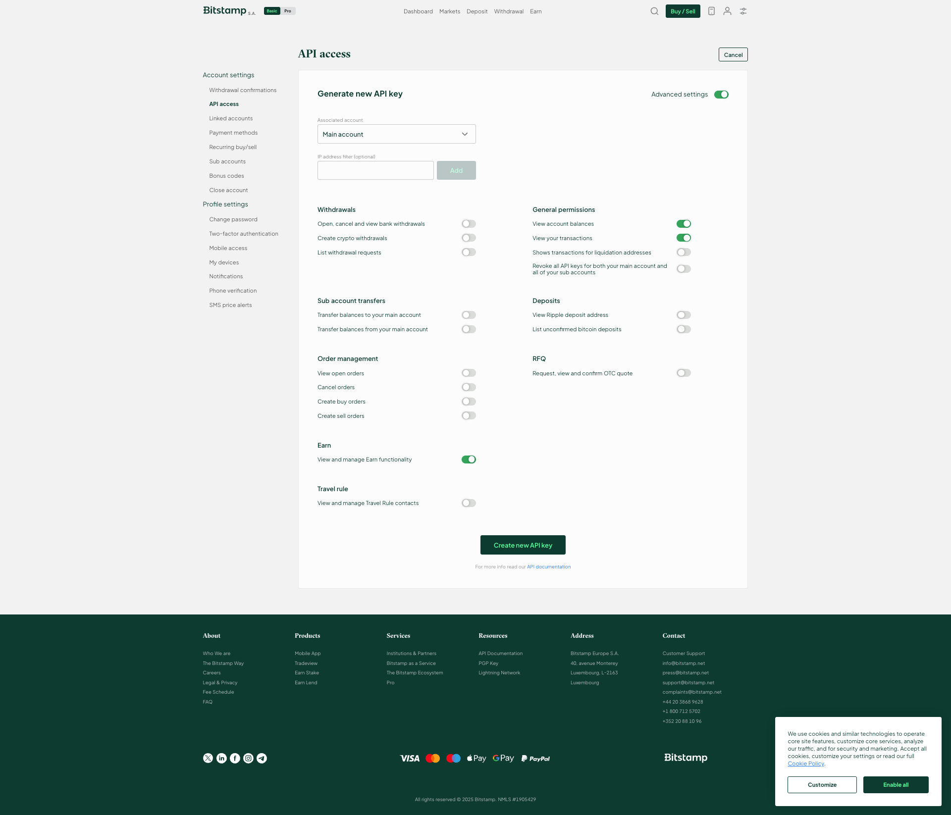 L’API di Bitstamp Le permette di connettere il Suo account a Waltio per importare automaticamente i Suoi depositi, prelievi, saldi e guadagni.
