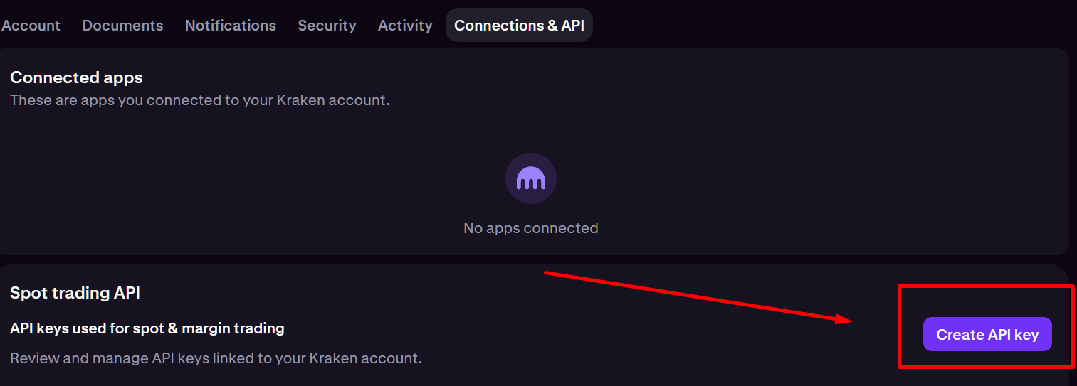 - Acceda al suo account Kraken Pro e vada su Crea la tua chiave API.