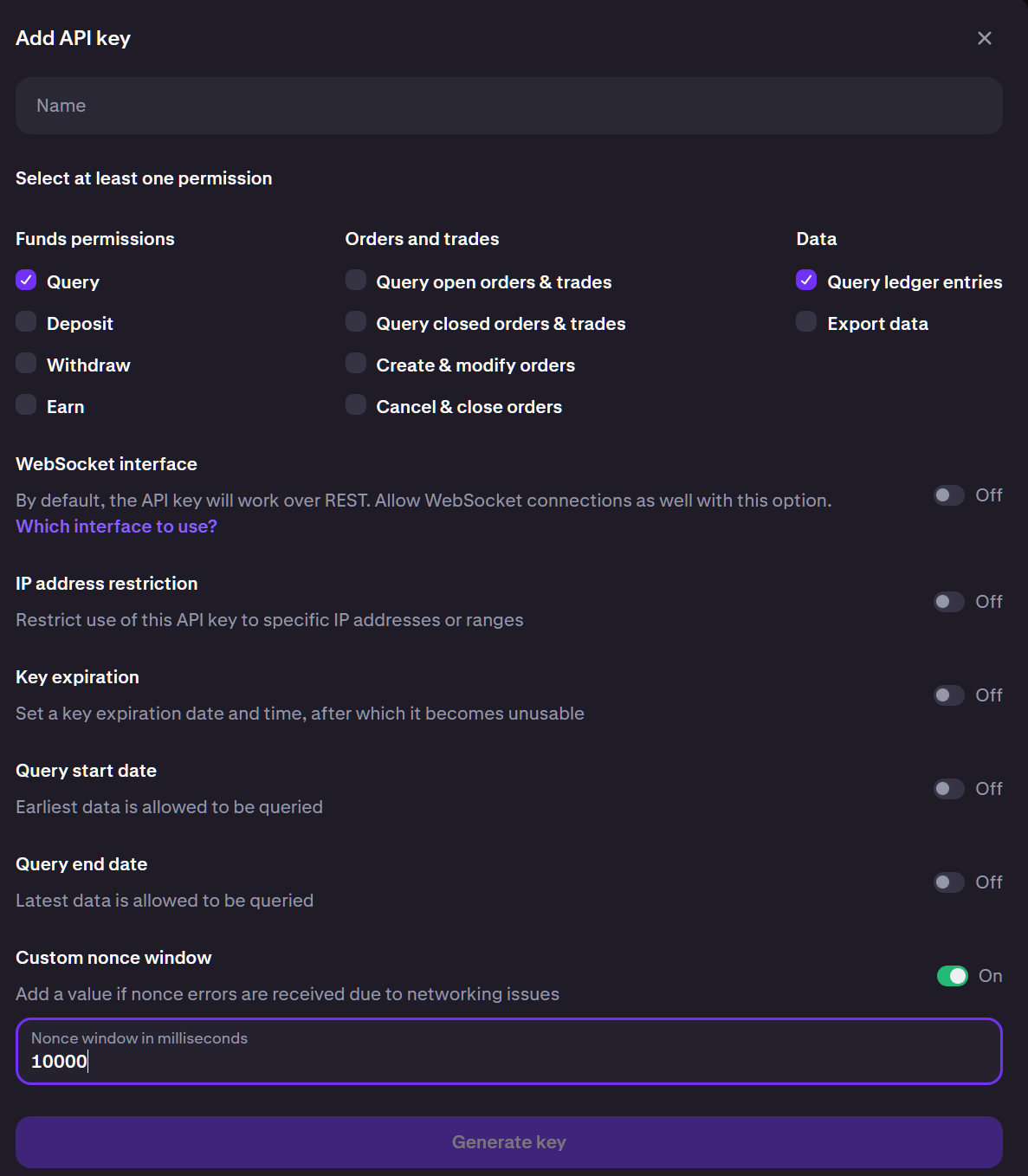 - Inserisca la sua chiave API di Kraken.
